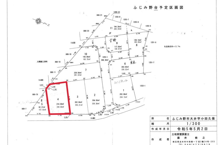 | 土地面積 | 214㎡ | 坪数 | 64.8坪 | 坪単価 | 17万円 |